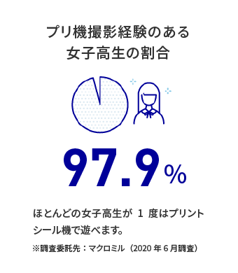 プリントシール機は、女子高校生を中心に遊び文化の一つとして定着しており、プロ仕様の機材や技術で、理想の仕上がりを提供しています。ビジネスモデルは、アミューズメント施設への機器・消耗品販売と、エンドユーザーへの月額課金サービスの二重構造です。