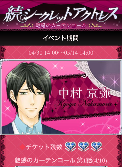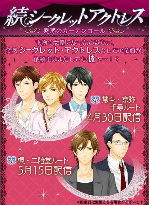 ・「GREE」(http://gree.jp)≫ゲーム≫「シークレット★アクトレス~恋の専属契約~」で検索