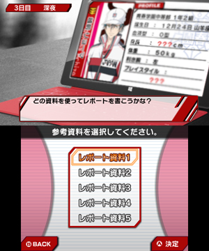 テニスコート以外にも、トレーニング施設、選手寮など様々な場所でキャラクターと交流が可能。