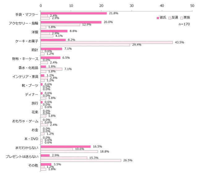 Q.彼氏、友達、家族にはそれぞれクリスマスに何をプレゼントする予定?※単数回答