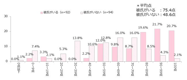 TREND② 彼氏の有無でリア充度平均点に約27点の差
