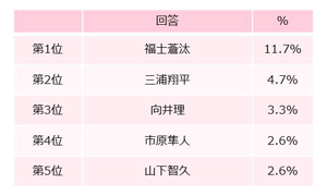 TREND③ 付き合いたい理想の芸能人ランキング、第1位は福士蒼汰さん