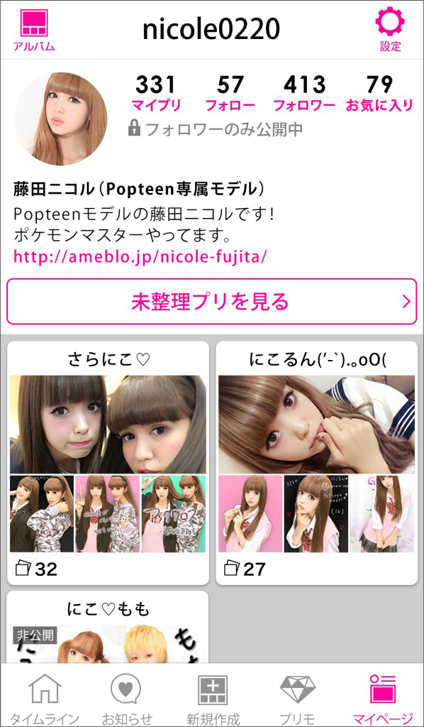 ○撮影したプリ画を分類できるアルバム機能・各アルバムにはタイトル、カバー画像、説明文をつけることが可能