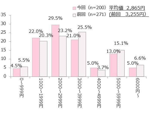 女子高生・女子大生が思う男性が望んでいるチョコについて調査したところ、第1位の「心のこもった手作りチョコ」(44.2%)に続いて、「もらえるものは何でも嬉しい」(43.2%)が僅差で第2位にランクインしました。実際に贈るチョコは手作りする割合が高いですが、”男性にとってはもらえるかどうかが大切なのだろう”という思いがあるようです。なお平均予算は昨年比390円減の、2,865円。予算削減は男性のモチベーションの予測と関係しているのかもしれません。