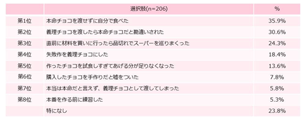 TREND① “バレンタインあるある”は 「義理チョコを本命だと勘違いされた」が第2位