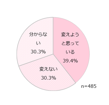 この春髪型を「変えようと思っている」割合は39.4%で、 前回(2013年2月調査)時に比べて44.4%減少する結果となりました。一方「変えない」派は15.0%から30.3%へ、「分からない」派は0.6%から30.3%へと大幅に増加。回答者の73.4%がストレートヘアであり、また全体傾向としてヘアアイロンを所持する環境にあることから、カールではなく自然なストレートを髪型のベースとし、TPOに応じてアレンジをするスタイルが主流となっているのかもしれません。