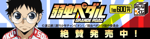 TVアニメ第1期が2013年10月から放送され、2014年10月よりTVアニメ第2期「弱虫ペダル GRANDE ROAD」が放送された。2015年夏には劇場版の公開が決定している。原作は2008年より週刊少年チャンピオンで連載中の自転車競技を題材にした少年漫画で、累計発行部数1,300万部を突破した人気作。気弱でアニメが大好きな高校生の小野田坂道が、自転車競技と出会い、個性的な先輩や仲間と共にインターハイを目指す姿を描いたスポーツ青春ドラマ。