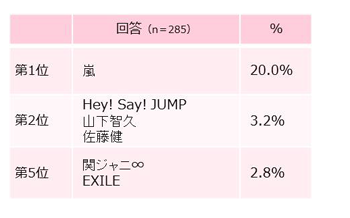 初めてファンになった異性の芸能人、嵐が断トツの1位