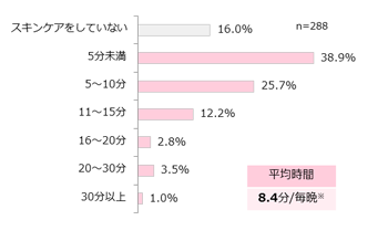 毎晩のスキンケア時間は平均8.4分、アイテムは自分で購入しない派が32.6%