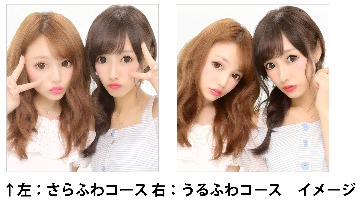 加工感の少ないより自然で柔らかい仕上がりの”さらふわ”コースと、色味を感じて顔のパーツが際立つ仕上がりの”うるふわ”コースを搭載。また、撮影者は、実際に撮影した自分の画像を見ながら仕上がりを見比べて、コースを選択することが可能です。