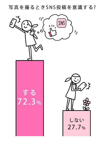 写真撮影時にSNS投稿を意識する派が72.3%!自撮りやファッションに関心