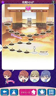キャラクターとの会話時に発生するセリフやリアクションの選択肢によって、彼からあなたへの好感度の種類や度数、そしてストーリーが変化。合計3話楽しめるエンディングは、「Romantic End」と「Dramatic End」の2パターンから選択することができます。