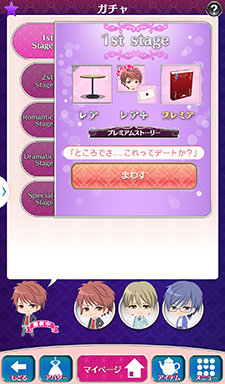 毎日無料で楽しめるガチャをご用意。アバター用のファッションアイテムなどが当たるほか、本編とは異なる、彼目線の特別なストーリーが開放される可能性もあります。