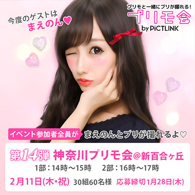 『girls mignon』新百合丘オーパ店では、最新のプリントシール機など5台を設置する予定です。メイクアップカウンターやソファースペースを設け、待ち合わせ場所としてもご利用いただけるような開放的で気持ちの良い空間を提供いたします。また、当店では、女性スタッフが常駐しており、ヘアアイロンの無料レンタルサービスを実施。常に女性が”かわいい・キレイ”を体験でき、楽しく、安全に過ごせる新しいプリントシール機専門店として、店舗から流行を発信していきます。また、本店舗のオープンを記念し、人気モデル・前田希美(まえだのぞみ)さんと一緒にプリントシール機で撮影できるイベント「神奈川プリモ会@新百合ケ丘」を2月11日(木)に開催いたします。