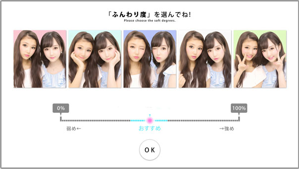 - 2.仕上がりのぼかし具合と色味を自身で調整できる「ふんわり度調整」機能追加