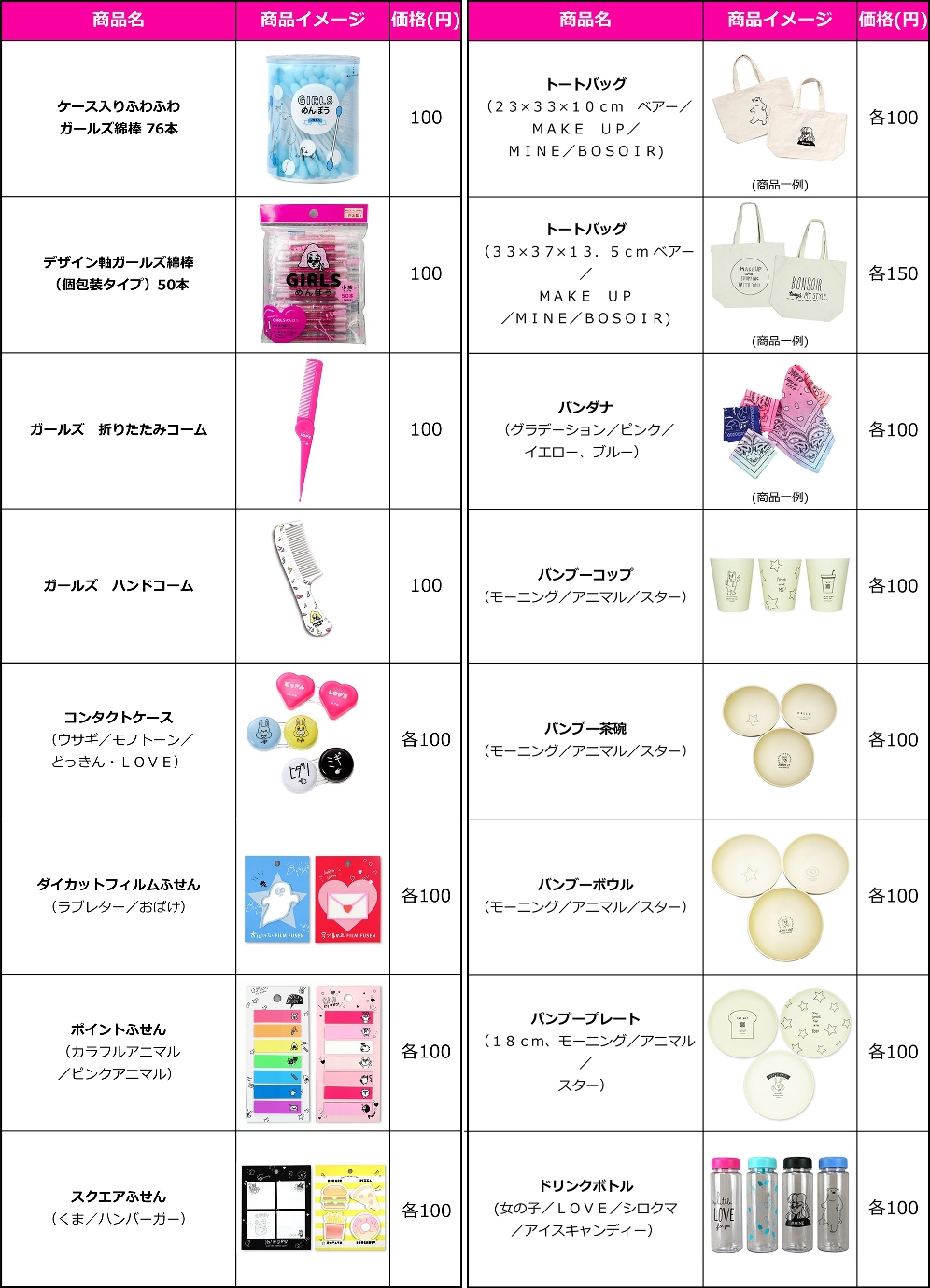 ダイソー×フリュー『GIRLS’TREND 研究所』 第3弾コラボ商品 一例