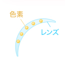 色素が直接瞳に触れない”ラップイン構造”を採用。レンズ自体は薄く、軽い着け心地です。