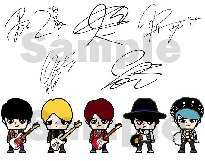 | (2) | メンバーをモチーフにしたオリジナルキャラクターや直筆サインなどのスタンプを計10種搭載。 |