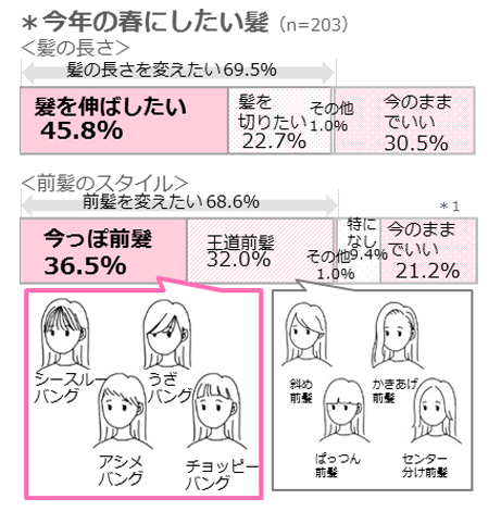 TREND(1) この春、髪を伸ばしたい派が多数(45.8%)、前髪は”今っぽ”スタイルを約4割が希望