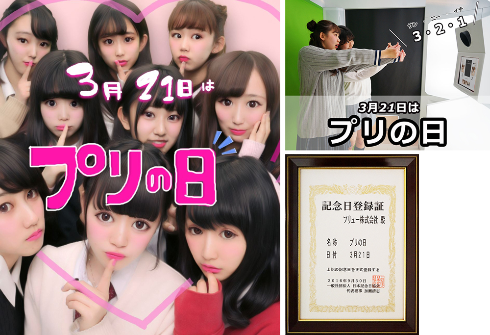 プリントシール機の撮影時に「3(サン)・2(ニー)・1(イチ)」とカウントダウンのガイド音声が流れることから、3月21日を「プリの日」に制定。