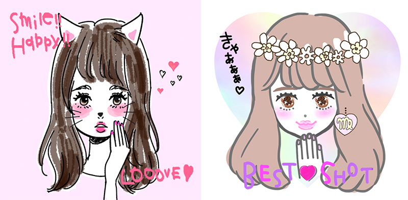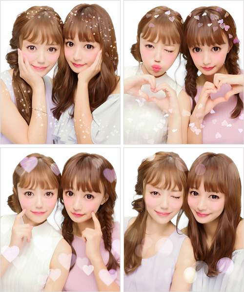また、撮影した各画像にフィルター加工を施し”ふんわり感”を演出できる「盛りフィルター」機能をリニューアル。クールな印象のブルーと、華やかな印象のマーブルのフィルターを新たに追加したほか、フィルター加工の上からハート柄や水玉柄などをあしらい、より”キュン”とする1枚に仕上げることが可能なデコレーション素材をご用意いたしました。