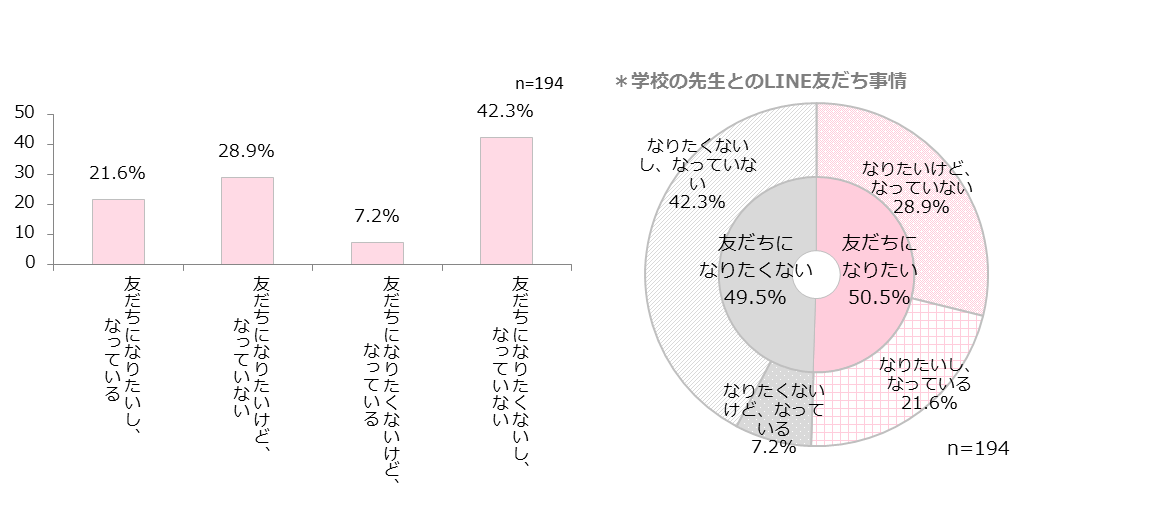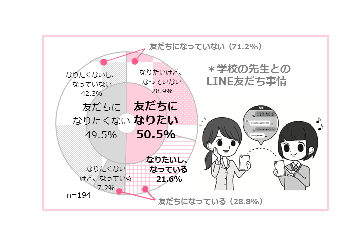 “学校の先生とLINE友だち”になりたい人は50.5%、なっている人は28.8%