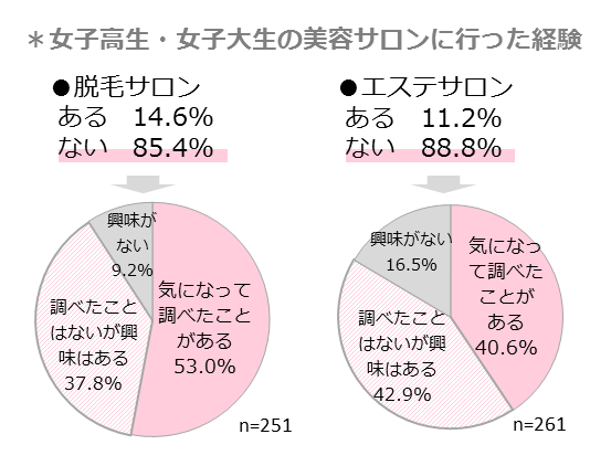 女子高生・女子大生が脱毛&エステサロンに行った経験