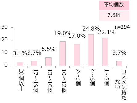 • 休みの日にお出掛けする時に持ち歩くコスメの数は?