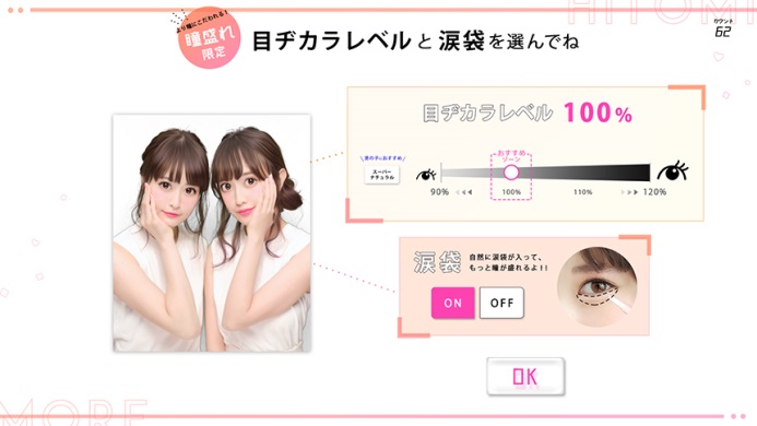 ―左右の目の大きさをワンタッチで揃え、左右対称の美しい顔に調整が可能