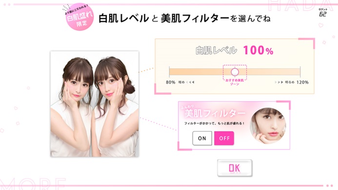 肌の美白度合を調整可能 - 2.人気の「盛れタッチ」機能をバージョンアップ