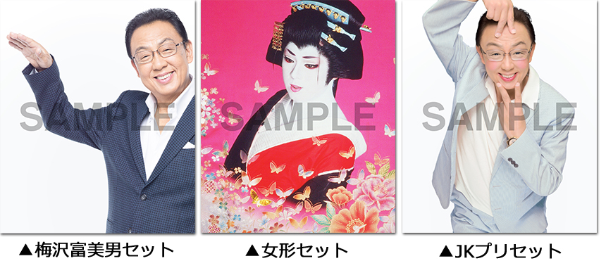 梅沢富美男さんならではの世界観を表現した背景やフレームで撮影できるコラボ撮影フレームセットをご用意。全4種類のデザインで、それぞれ異なる魅力をお楽しみいただけます。