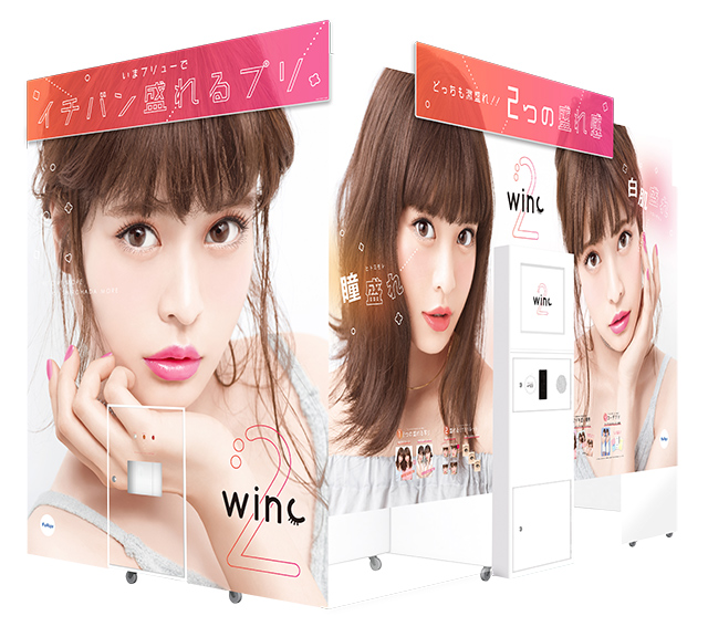 『winc2』は、”いまフリューでイチバン盛れる”をコンセプトとしたプリ機。「瞳盛れ」「白肌盛れ」の2つの撮影コースを新たに設定し、写りの仕上がりを左右する”肌と目の盛れ感”を、自分好みに調整できる機能を搭載。