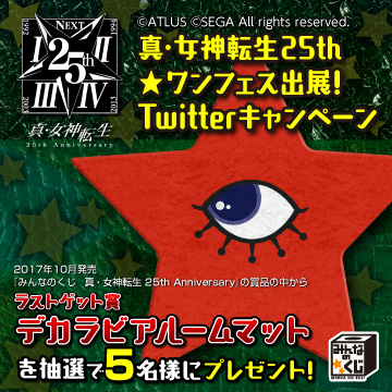 - 2017年10月に発売した『みんなのくじ 真・女神転生 25th Anniversary』の賞品の中から、ラストゲット賞「デカラビアルームマット」を1枚プレゼント。