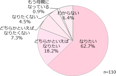 “母親になりたい派”が約8割で、出産希望の平均年齢は25.0歳