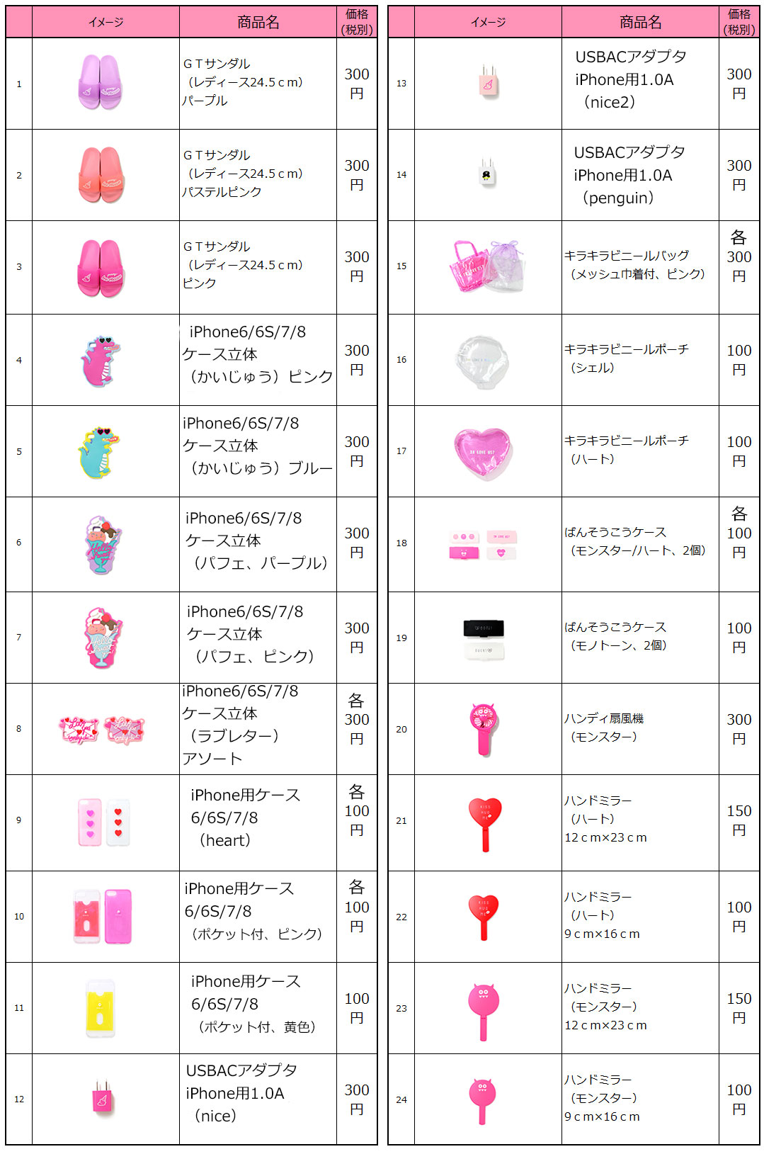 本コラボでは、”PINKシリーズ”と題し、様々なアイテムをご用意。また、フリューの最新プリントシール機(以下 プリ機)『PINKPINKMONSTER(ピンクピンクモンスター)』(以下 ピンモン)のキャラクターをモチーフにした商品も展開します。さらに、ハンディー扇風機やサンダルなど、夏のおでかけや”フェス”などのイベントにも最適なアイテムも登場。”ピンク色のかわいいアイテムを、プチプラでそろえたい!”と言うお客様の”あったらいいな!”を叶える商品を取り揃えました。