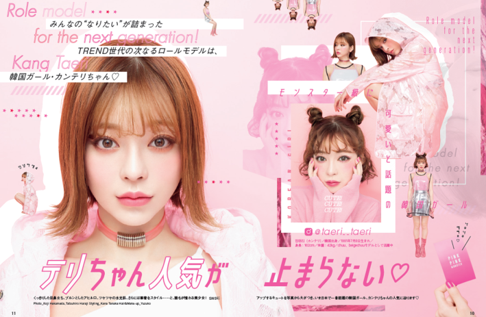 特集ページには、プリ機『ピンモン』の擬人化キャラクターを務め、Instagramなどで今話題急上昇中の韓国ガール「カン・テリ」さんが登場。髪型やスタイルなど、大人気となっている理由に迫ります。