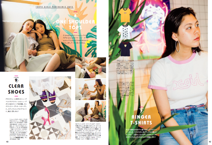 「流行をおさえた服でSNS映えスポットにおでかけ」をテーマに、SNS(ソーシャル・ネットワーキング・サービス)世代の女の子3人がこの夏の必須アイテムを紹介。プリントキャップやワンショルダーのトップス、クリアシューズなど今話題のファッションアイテムに加えて、思わず行ってみたくなるおしゃれなフォトスポットの情報が満載です。
