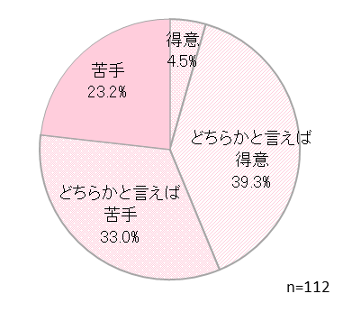 ・英語が「得意」と回答した人は、回答者全体の4.5%。 「どちらかと言えば得意」を含むと43.8%