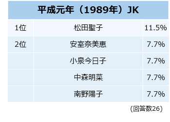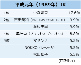 あなたにとっての歌姫は?【平成元年(1989年)JK】調査結果