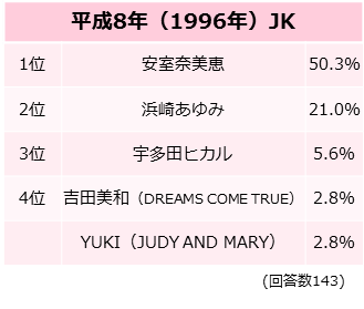 あなたにとっての歌姫は?【平成8年(1996年)JK】調査結果