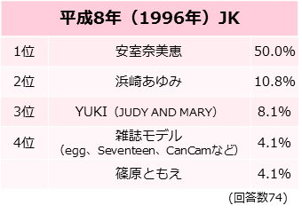 ファッションやメイクを参考にする有名人は?【平成8年(1996年)JK】調査結果