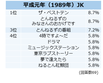 好きな番組は?【平成元年(1989年)JK】調査結果