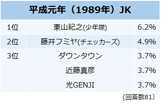 好きな男性芸能人は?【平成元年(1989年)JK】調査結果