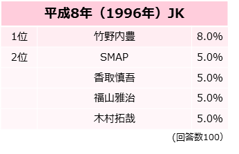 好きな男性芸能人は?【平成8年(1996年)JK】調査結果