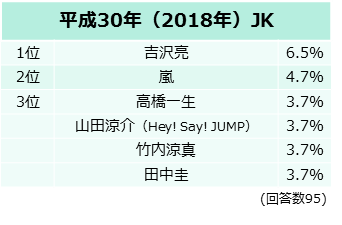 好きな男性芸能人は?【平成30年(2018年)JK】調査結果