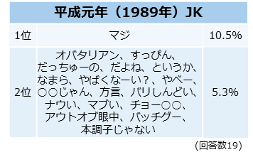あなたが思う女子高生の流行語は?【平成元年(1989年)JK】調査結果