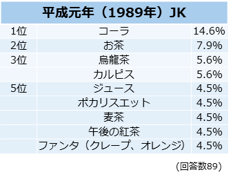 あなたが思う女子高生が良く飲む飲料水といえば?【平成元年(1989年)JK】調査結果