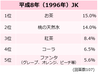 あなたが思う女子高生が良く飲む飲料水といえば?【平成8年(1996年)JK】調査結果
