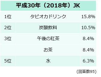 あなたが思う女子高生が良く飲む飲料水といえば?【平成30年(2018年)JK】調査結果