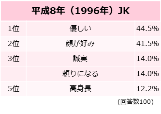 もし結婚をするなら、相手に望む条件は?(最大3つまで)【平成8年(1996年)JK】調査結果